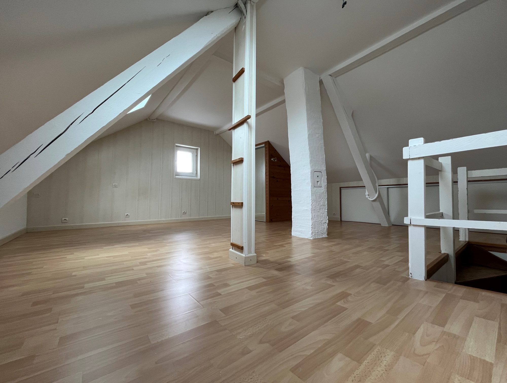 Le logement se compose, au rez-de-chaussée, d'une entrée menant à un vaste séjour lumineux ouvert sur une cuisine aménagée et entièrement équipée, formant un espace de vie convivial et fonctionnel. Une première salle de bains équipée complète ce niveau.