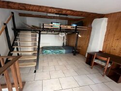 Maison de village meublé sur 3 niveaux comprenant au rez-de-chaussée une cuisine. Au 1er étage une pièce principale, une salle d'eau/wc, et au 2ème étage une chambre avec mezzanine. Réf. 25790.