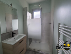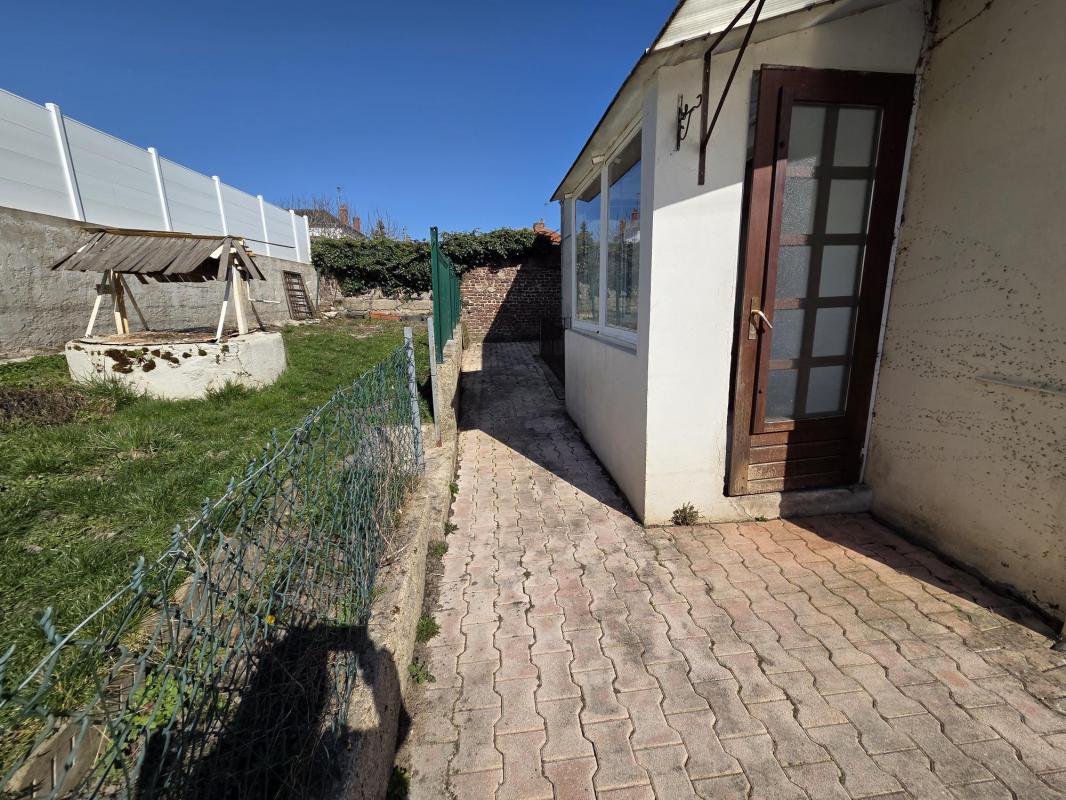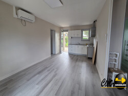 Maison de plain pied au calme et à proximité des commodités comprenant entrée, cuisine ouverte sur séjour, deux chambres, salle d'eau, wc. Garage, buanderie. Sur un terrain clos de 798 m².
