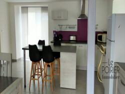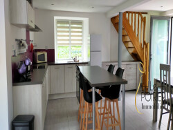 NOUVEAU : Maison d'habitation principale en pierres entièrement MEUBLÉE et rénovée en 2015. Au rez-de-chaussée, elle offre une pièce à vivre avec une cuisine aménagée et équipée (four, plaque, hotte, lave-vaisselle réfrigérateur et micro-ondes), une chambre avec sa salle d'eau privative et un w-c. séparé. A l'étage, un palier avec dressing desservant deux chambres et une salle de bains avec w-c. Mezzanine pour un espace bureau Une buanderie et un garage. Terrasse et jardin. Libre le 20 avril 2026
