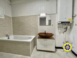 PORT LA NOUVELLE: en plein centre du village: spacieuse maison RDC+1 avec cour arrière sans vis-à-vis, entrée, desservant 1 wc indépendant, salon, cuisine, et salle de bain; 1er étage: 4 chambres separées, wc. Double vitrage, clim réversible, 01/04 / loyer: 900 + 20 d'ordures ménagères