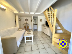 QUARTIER LAC : meublé à l'année: pavillon en excellent état de type T2 MEZZANINE, superficie 34 m² + 10m² de véranda, belle terrasse avec barbecue, entrée avec placard, cuisine équipée, salon et coin bar, salle à manger dans véranda, salle d'eau / wc, à l'étage: espace mezzanine avec couchage et une chambre séparée avec placard, climatisation réversible, libre le 15/05 : loyer 646 + 8 de charges (ordures ménagères) + 25 (pour la consommation d'eau)