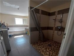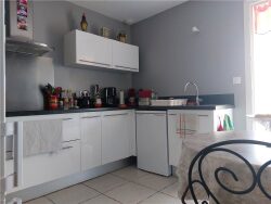 Maison de plain-pied mitoyenne par le garage comprenant : entrée avec placard, cuisine intégrée, séjour, dégagement, 3 chambres avec placard, une salle de bains et WC. Un garage de 22 m² avec accès au séjour. Un porche de 8 m². Une terrasse couverte de 15 m². Terrasse de 8 m². Un jardin clos et une cour. Réf. 3224001.