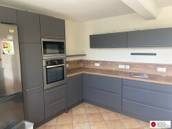 Maison d'habitation sur deux niveaux élevé sur cave Au rez-de-chaussée : Entrée. Cuisine séjour wc une pièce Etage : 1 chambre, 3 pièces en enfilades (salon/bureau), salle de bains avec wc une chambre avec salle de douche et un wc indépendant