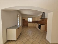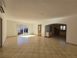 Belle maison T4 de plain-pied comprenant une cuisine meublée et semi-équipée ouverte sur un grand séjour, un couloir avec placards, une salle d'eau, un WC séparé et trois chambres dont deux avec placards. Garage attenant à la maison avec pièce cellier/buanderie. Jardin clos et arboré. Les charges comprennent la taxe d'ordures ménagères et l'entretien de la climatisation. Réf. 2606-1.
