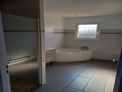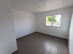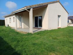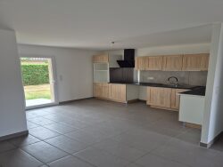 A louer maison de plan pied type T4 avec jardin se composant : d'une entrée, d'un séjour, d'un salon, d'une cuisine équipée, de trois chambres, d'une grande salle de bains, wc, garage. Atout : maison récente climatisée très lumineuse