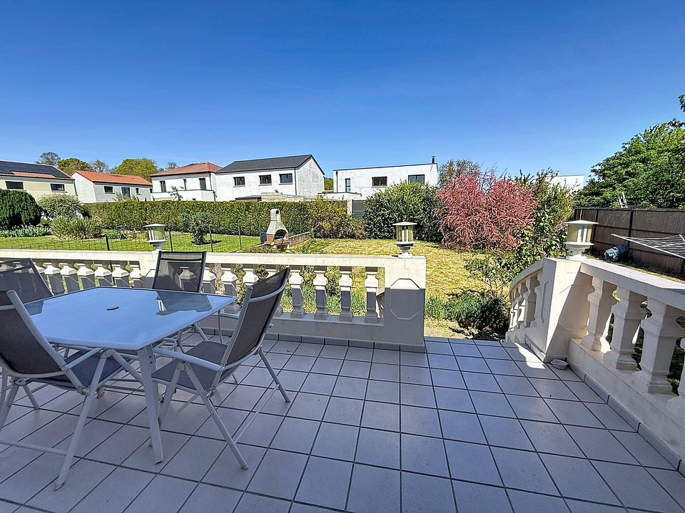 À quelques minutes seulement du Luxembourg, dans la commune recherchée de Kanfen, cette maison à ossature bois déploie une signature architecturale singulière, pensée pour conjuguer lumière, volume et sérénité.