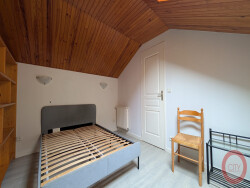 À l'étage : deux chambres confortables avec rangements intégrés.