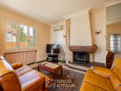 A deux pas de la place Bénédict Teissier, dans le 5e arrondissement de Lyon, cette maison individuelle construite en 1961 se déploie sur un terrain arboré de 650 m². D'une surface totale de 160 m², dont 80 m² habitables en l'état, elle offre un important potentiel de rénovation. Sa configuration sur deux niveaux et son agréable balcon filant en font un bien rare à réinventer selon ses envies. L'accès se fait par un escalier extérieur menant à une entrée avec placards. L'étage principal accueille un lumineux séjour traversant avec cheminée et salle à manger, prolongé par un balcon surplombant le jardin. La cuisine, indépendante, peut facilement être ouverte pour créer une belle pièce de vie. Trois chambres complètent cet espace, ainsi qu'une salle de bains avec toilettes. L'agencement d'origine est fonctionnel, et les volumes généreux permettent de nombreuses possibilités d'aménagement. En rez-de-jardin, le sous-sol total de 80 m² abrite un vaste garage de 30 m², une chaufferie, une buanderie avec baignoire, des toilettes, une cave ainsi que des espaces de rangement. Ce niveau, bénéficiant d'ouvertures et d'une belle hauteur sous plafond, peut également être repensé pour créer un espace de vie complémentaire, un atelier ou un bureau indépendant. Située dans une impasse calme, la maison bénéficie d'un environnement résidentiel agréable, à proximité immédiate des écoles, commerces de quartier, transports en commun et des commodités du Point du Jour. Par son architecture typique des années 60, ses volumes exploitables et son écrin de verdure en pleine ville, cette maison représente une belle opportunité de projet atypique à façonner. CLASSE ENERGIE : E / CLASSE CLIMAT : D Montant moyen estimé des dépenses annuelles d'énergie pour un usage standard, établi à partir des prix de l'énergie des années 2021,2022,2023 : entre 2 220 euros et 3 070 euros. Contact : Aurélien - 06 32 21 70 25 Aurelien Badin (EI) Agent Commercial - Numéro RSAC : 894 025 436 - VIENNE.