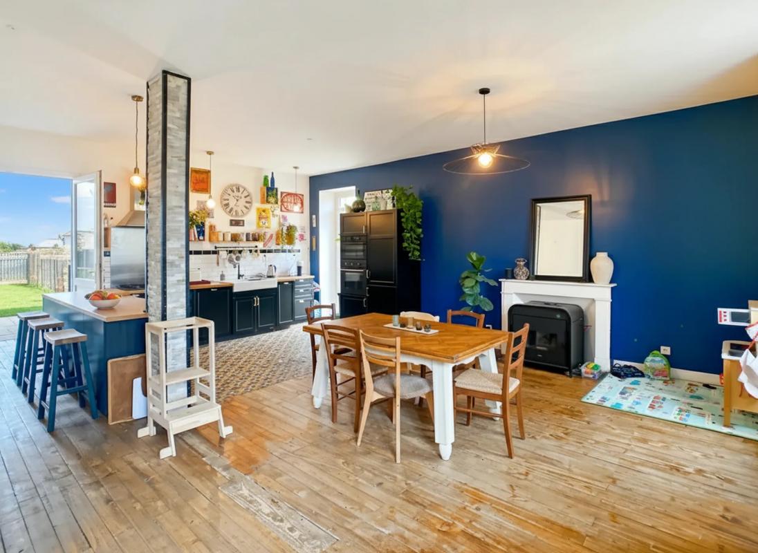 Le rez-de-chaussée est composé d'une entrée, d'un grand salon et d'une cuisine.