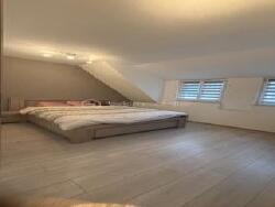 Une belle pièce mansardée idéale pour une chambre ou une salle de jeu.