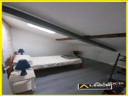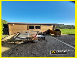 La 1ère partie se compose d'un salon/salle à manger avec cheminée, une cuisine aménagée et équipée, une salle de bain avec wc, un accès au garage, à l'étage un dressing et 2 chambres en enfilade. L'extérieur se compose d'une terrasse, d'un chalet en bois, d'un jardin clôturé.