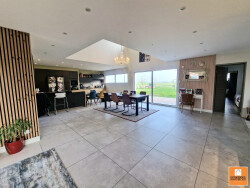 Au rez de chaussée, vous allez découvrir un vaste espace salon séjour, cuisine - cellier lumineux d'environ 91 m2 donnant sur un très grand jardin orienté sud. Se jouxte au séjour, une suite parentale (chambre, dressing et salle d'eau wc).
