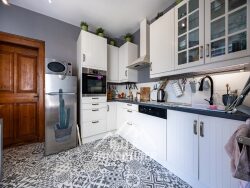 CONFIGURATION RDC : - Grande entrée avec rangements - Cuisine indépendante entièrement équipée de 10m² - Salle à manger de 17,5m² - Salon de 24m² avec magnifique poêle à bois pivotant et accès au jardin - WC séparé - Salle de douche - Chaufferie