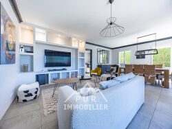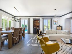 LES CARACTERISTIQUES DE CE BIEN : - 6 chambres (dont 2 suites parentales) - 2 salles de bain + 1 salle de douche - 3 WC - Garage avec porte automatique sectionnelle - Portail automatique en fer forgé - 6 emplacements de parking - Sous sol aménagé en salle de jeu avec kitchenette, cinéma, salle de sport, cave à vin - Piscine 9x4 chauffée - Pergola sur dalle béton - Terrain de pétanque - Menuiseries PVC double vitrage + volets electriques - Climatisation dans 3 chambres - Reliée à Fibre - Chauffage au sol - Chaudière fioul DE DIETRICH