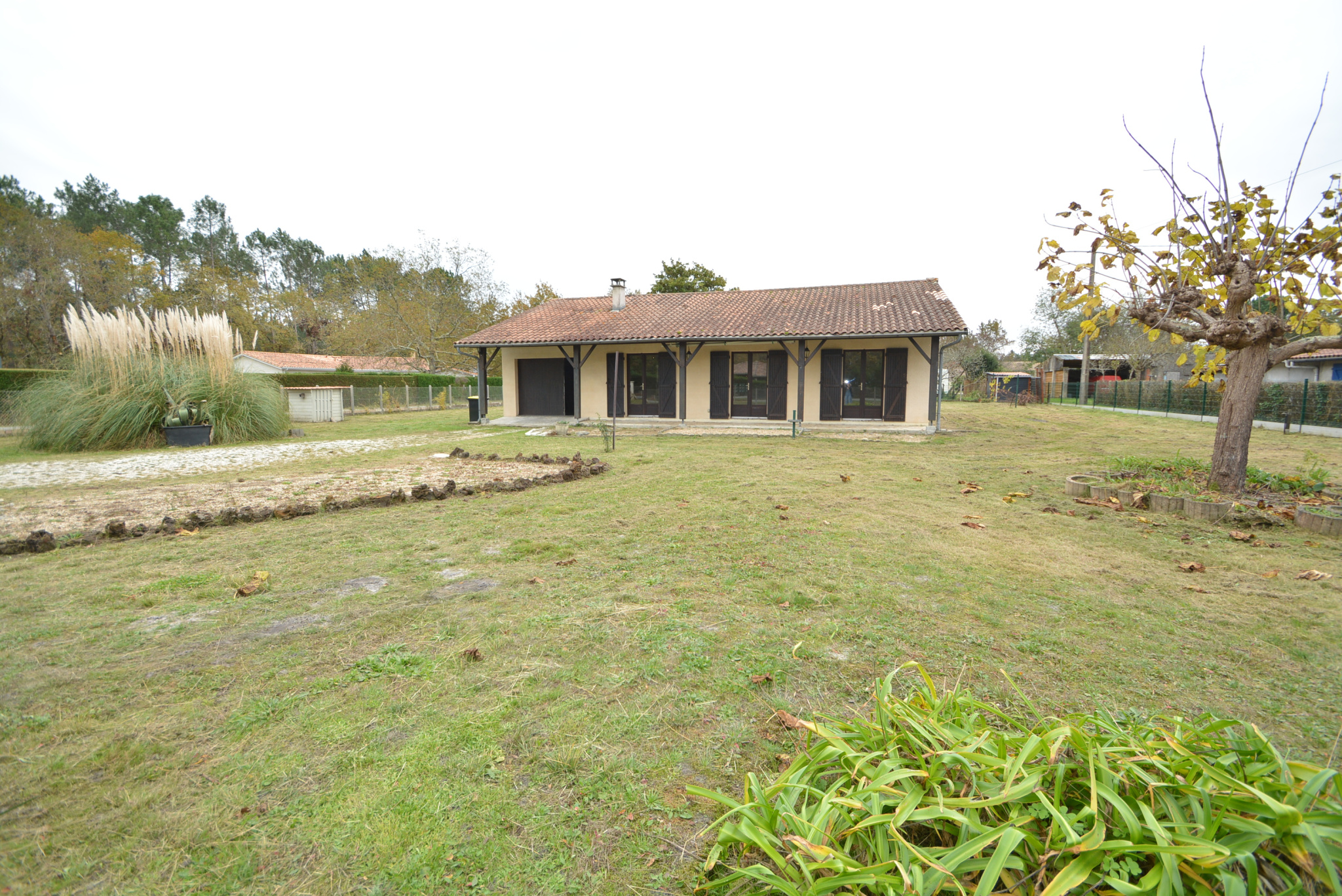 À VENDRE, MAISON édifiée en traditionnel, à rénover intérieurement, offrant un joli potentiel, saine et habitable de suite, composée de 4 pièces principales, de plain-pied et agencée comme suit : SÉJOUR/SALON avec cheminée donnant sur terrasse avant couverte, CUISINE fermée à aménager donnant sur l'extérieur, COULOIR DE DÉGAGEMENT, 3 CHAMBRES, SALLE DE BAINS, W.C. indépendant avec fenêtre + Garage traversant attenant et Terrasse avant couverte, de plain-pied sur une belle parcelle de terrain clôturée de 2.033 m2 . Situation attractive : En périphérie immédiate du Bourg et de ses commodités... Proche, des Écoles, maternelle et primaire, avec ramassages scolaires pour Collège et Lycée + crèche associative dans le village... Près de piste cyclable... de l'Océan, du Bassin d'Arcachon et du Lac de Lacanau...