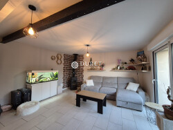 Cette maison parfaitement rénovée se compose : - Au rez-de-chaussée : un salon séjour ouvert sur une cuisine aménagée (meuble haut et bas) et équipée (four, lave-vaisselle, hotte, plaque de cuisson), une salle d'eau et des toilettes avec un espace buanderie. - À l'étage : un pallier dessert deux chambres avec placards intégrés. Un carport pour deux véhicules, un local à vélo et une dépendance (appentis et atelier) viennent compléter ce bien.