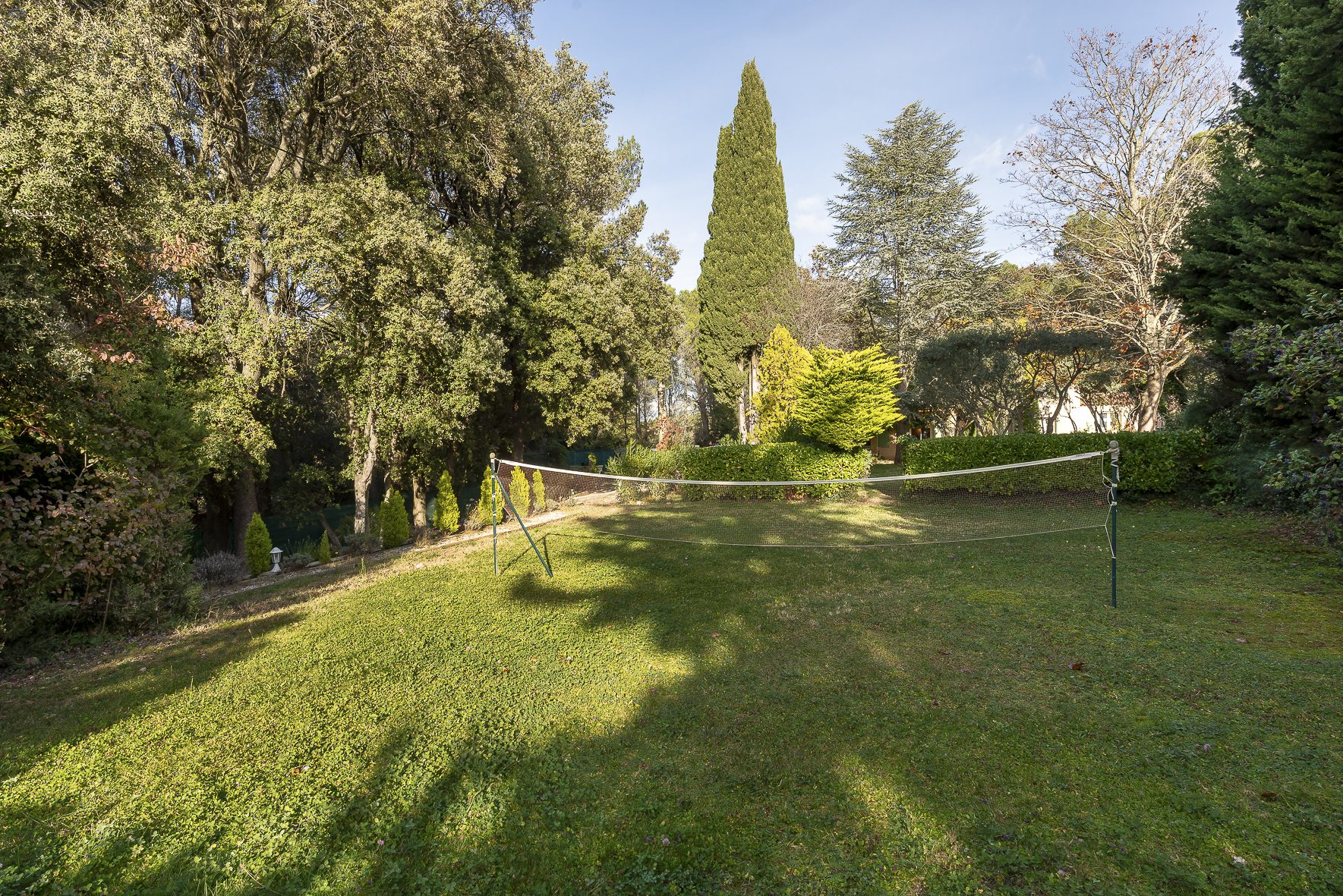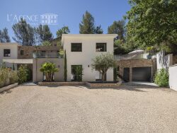 A 20 minutes du centre ville d'Aix-en-Provence, au pied de la montagne Sainte Victoire, la propriété s'étend sur 2 hectares de terrain soigneusement paysagé, avec piscine chauffée, très beau court de tennis et une oliveraie de 100 pieds.