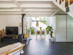 L'espace extérieur est un agréable et intimiste patio de 17 m2 qui vient en prolongation d'une magnifique ouverture (large baie 3 vantaux à galandage). Soulignons les bonnes prestations du bien, et notamment : agréable mode de chauffage (au sol, chaudière gaz Frisquet récente + petit poêle à bois), une cuisine aménagée et équipée (hotte à extraction extérieure), menuiserie alu double vitrage (excellente qualité Technal), verrière dotée d'un store électrique, revêtements de sol et matériaux de qualité (élégantes portes en chêne massif, parquet massif à l'étage), etc