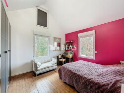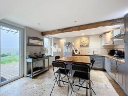Entièrement rénovée et très bien isolée, elle propose des prestations modernes et confortables, avec une cuisine contemporaine, une salle de douche récente et un poêle à granulés assurant une atmosphère chaleureuse. À l'étage, trois belles chambres lumineuses ainsi qu'un espace bureau complètent l'espace nuit.