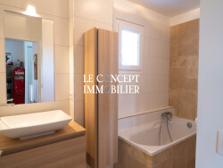 À l'étage, le palier sert d'espace de vie familial et lumineux, avec belle hauteur sous plafond, deux chambres donnant sur une terrasse abritée, un bureau, une salle de bain et une salle d'eau offrent confort et intimité.