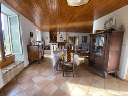 Une maison d'habitation composée : - au rez-de-chaussée : entrée, salon, cuisine, séjour-salon, chambre, salle de bain avec douche, cellier, W.C., - à étage : six chambres, mezzanine, trois salles d'eau, salle de bain, deux W.C. Bûcher, cave.