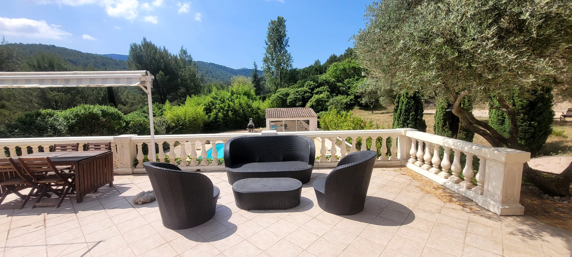 3 belles chambres, spacieuses et lumineuses, 2 salles de bains lumineuses Volumes généreux, poutres apparentes, matériaux nobles Pierre naturelle, authenticité conservée Piscine terrasse et local technique Petit cabanon en pierre, idéal pour le stockage ou un atelier Terrain arboré, sans vis-à-vis, ambiance méditerranéenne