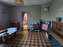 Une maison à usage d'habitation sur 2500 m² comprenant : Entrée, cuisine, salle à manger, salon, 3 chambres, buanderie, couloir. Salle de bains (baignoire, vasque), coin buanderie, WC. Caves et greniers. Extérieur : dépendances (grange, anciennes étables), terrain. Chauffage par convecteurs gaz. Grande cour et jardin.