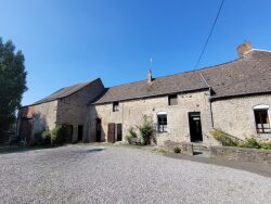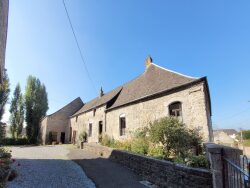 Une maison à usage d'habitation sur 2500 m² comprenant : Entrée, cuisine, salle à manger, salon, 3 chambres, buanderie, couloir. Salle de bains (baignoire, vasque), coin buanderie, WC. Caves et greniers. Extérieur : dépendances (grange, anciennes étables), terrain. Chauffage par convecteurs gaz. Grande cour et jardin.