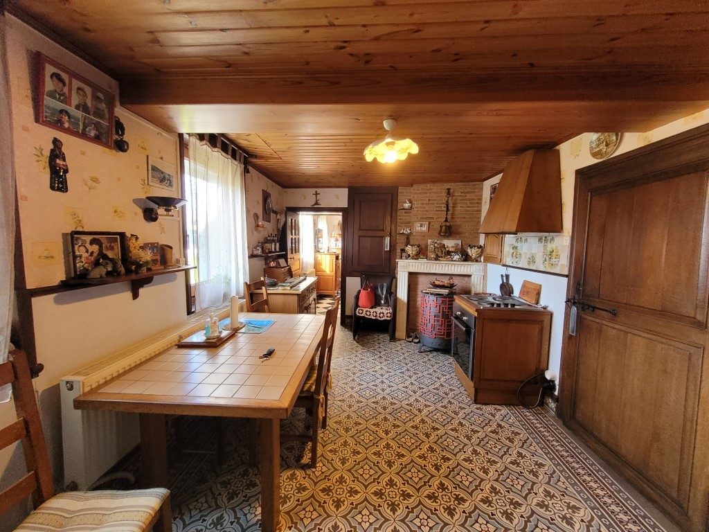 Maison à vendre. Proche d'Avesnes sur Helpe. Entrée, salon, salle à manger, cuisine, WC. Véranda. Etage: 2 chambres, salle de douches et un grenier. NOUVEAU. GARAGE ET JARDIN.