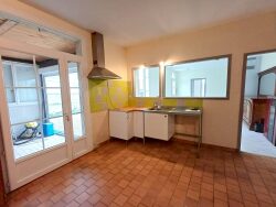 Centre ville d'Azay le Rideau, proche toutes commodités, maison de ville comprenant appentis d'entrée, cuisine semi-ouverte sur séjour avec poêle à granulés et cheminée insert, pièce à la suite, buanderie, WC. A l'étage, dégagement, 2 grandes chambres, salle de douche et WC. Grenier au dessus. Attenant à la maison une grange ancienne forge environ 100m² au sol, grenier au dessus et cave voûtée (accès par l'appentis d'entrée ou porte de la grange). Cour avec portail automatique. En face, de l'autre côté de la rue, un terrain de loisirs d'environ 600m² avec un cabanon au bord de l'Indre.