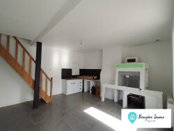 Elle se compose de 3 grandes chambres, dont une chambre passante, d'une salle de bains, ainsi que d'une cuisine spacieuse offrant de belles possibilités d'aménagement. Le séjour chaleureux, agrémenté d'une cheminée à foyer ouvert avec insert, constitue un véritable espace de vie convivial.