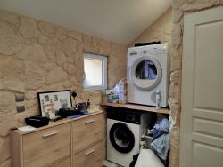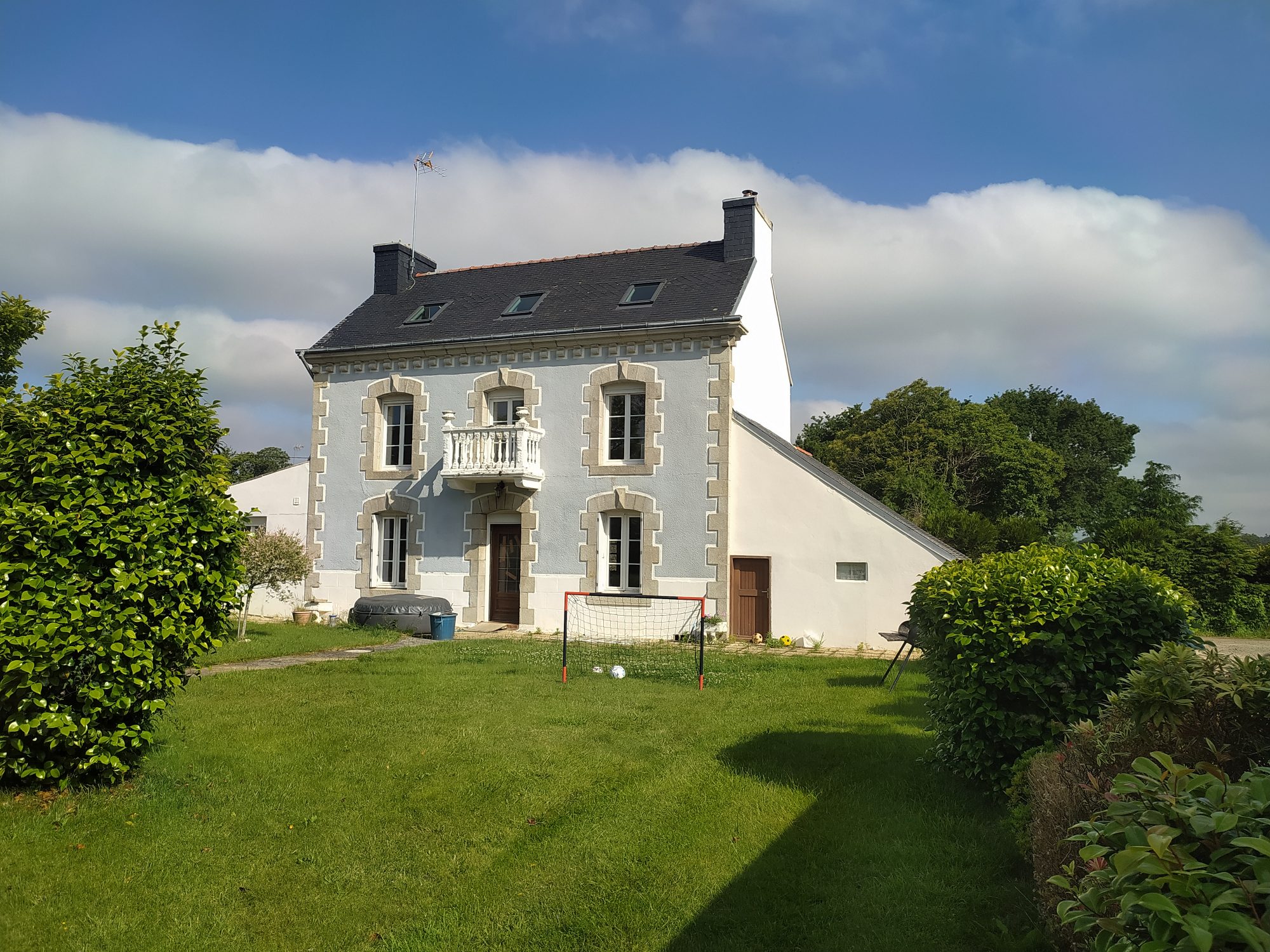 Maison en pierre de 154 m2 rénovée récemment. Entrée sur séjour avec cuisine ouverte, salon avec cheminée. espace buanderie, WC, salle de bains. Gîte attenant comprenant un espace de vie avec coin cuisine, douche et WC. A l'étage, deux chambres et un bureau. Cave. Grande terrasse en bois accessible depuis l'espace de vie et donnant sur un grand jardin. Un hangar sur dalle béton, plusieurs dépendances utiles en pierres, parpaings et bois complètent cette propriété. PAC air air neuve. Ensemble situé à quelques minutes du centre ville de Bannalec. Terrain de 2745 m2