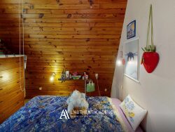 Le terrain accueille un chalet d'environ 30 m², actuellement habitable, fonctionnel et confortable. Il se compose d'un sous-sol complet, d'un étage avec une pièce de vie, une chambre et une salle d'eau, prolongé par un superbe balcon offrant une vue rare, ainsi que d'un espace aménagé dans la pointe du chalet, Celui-ci pourrait parfaitement convenir pour y vivre simplement, dans un cadre agréable et sans contrainte, ou servir de base pour un projet d'agrandissement.