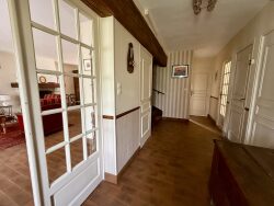 Au rez-de-chaussée, une entrée avec placard dessert les différentes pièces : un séjour/salle à manger traversant denviron 40m² avec cheminée, une cuisine aménagée et équipée avec accès terrasse, une première chambre, une salle d'eau et un W.C individuel. L'étage se compose d'un vaste pallier pouvant être utilisé en bureau, de trois chambres de plus de 12m² et d'une salle d'eau avec W.C. Un espace de rangement supplémentaire peut être aménagé si besoin.