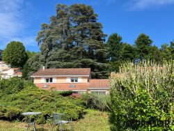 Plongez dans un cadre de vie paisible avec cette charmante villa construite en 1987, d'une surface habitable de 118 m², incluant un garage de 19 m² aménagé en suite parentale et d'une véranda chauffée de 20 m². Édifiée sur un terrain arboré de 1319 m², cette propriété offre calme, intimité et de magnifiques volumes baignés de lumière naturelle grâce à ses grandes baies vitrées en bois/alu à double vitrage.