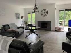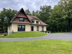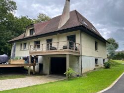 Maison de 265 m² habitables édifiée sur un sous-sol total, comprenant au rez-de-chaussée : entrée, couloir, séjour-salon de 69 m² avec cheminée insert, cuisine aménagée et équipée, deux chambres, une salle de bains avec douche, un dressing, un WC avec lave-mains. A l'étage: palier, deux chambres, une salle de jeux, une salle d'eau, un WC indépendant. Chauffage par pompe à chaleur (Air/air). Terrain en partie boisé d'une surface de 5847 m².