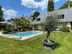 A la campagne, à 15-20 minutes de BERNAY et située à 3 kms d'un bourg tous commerces, propriété implantée sur un magnifique terrain arboré de 14500 m2 environ comprenant deux maisons, une dépendance et une piscine. La première maison comporte au rez-de-chaussée : une entrée (placards), WC, séjour-salon cheminée, cuisine aménagée. A l'étage, dégagement desservant deux chambres avec dressing et une salle de bains. Chauffage électrique au sol. Ensuite, une coursive permet de rejoindre la seconde maison menant au rez-de-chaussée sur un bureau, salle d'eau, WC, cuisine et séjour-salon avec poêle à bois. L'étage comprend trois chambres et une salle d'eau. A l'extérieur se trouvent une dépendance à usage de carport et garage d'environ 60 m². Pour compléter l'ensemble le bien dispose d'une piscine chauffée. Environnement calme et sans vis à vis.