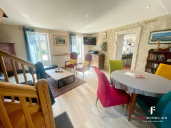 CAEN NORD-BERNIERES SUR MER UNIQUEMENT CHEZ FLO IMMOBILIER Dans secteur recherché proche du centre et de la mer, très jolie maison de bourg en pierres rénovée développant : Entrée, séjour-salon, cuisine aménagée et équipée, salle de douche, dégagement wc et buanderie/atelier. A l'étage palier desservant une grande chambre parquetée, salle de bains avec WC. Au deuxième étage palier desservant une grande chambre parquetée, salle de bains et WC. Cour commune permettant de profiter d'un extérieur et de stationner. A visiter !