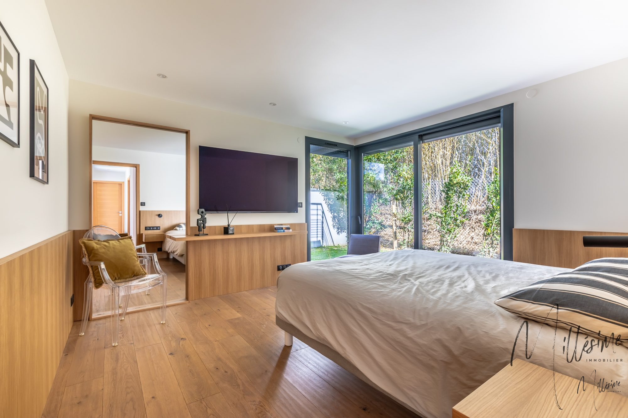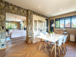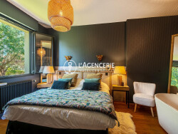 Située dans un environnement calme et agréable, à seulement 5 minutes à pied des commerces et 15 minutes du centre-ville, cette magnifique maison d'environ 192 m² saura vous séduire par ses prestations de qualité et sa rénovation soignée. Dès l'entrée, vous découvrirez un espace accueillant desservant un coin bibliothèque/bureau. La pièce de vie, spacieuse et lumineuse, s'ouvre sur l'extérieur, offrant un cadre de vie convivial et chaleureux. La cuisine, fonctionnelle et bien agencée, complète cet espace de vie. La maison dispose de trois belles suites, chacune avec sa salle d'eau et son dressing, garantissant confort et intimité. Un deuxieme espace bureau ainsi qu'une petite chambre TV viennent enrichir les possibilités d'aménagement. Un grand garage complète ce bien. À l'extérieur, vous profiterez d'une agréable terrasse abritée, parfaite pour les repas en plein air, d'un jardin arboré tout autour de la maison, ainsi que d'une piscine, idéale pour les beaux jours. Une maison entièrement rénovée avec goût, prête à accueillir ses futurs propriétaires.