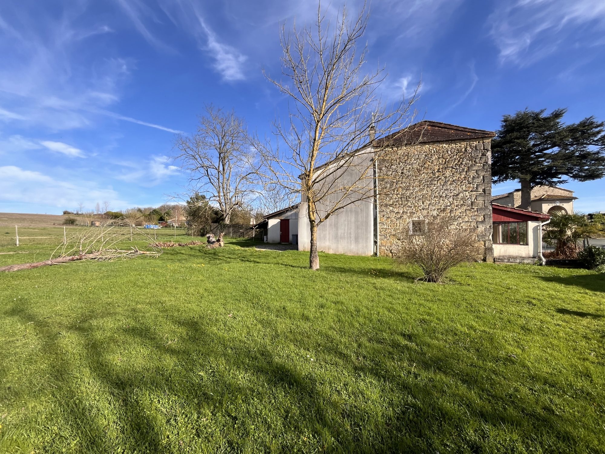 Propriété en pierres à rénover comprenant une maison d'habitation de 170 m2 comprenant au rez-de-chausée une cuisine, une salle à manger, une salle d'eau, WC indépendant, ainsi qu'un accès au cellier/garage. L'étage dispose de quatre grandes chambres. La propriété propose divers bâtiments types hangar, four à pain, four à prune, le parc offre une vue imprenable sur la campagne environnante. L'ensemble doit être rénové mais offre un très beau potentiel, à visiter rapidement !