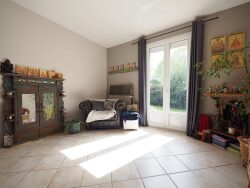Dans quartier pavillonnaire en centre-ville et proche gare, maison totalement individuelle de type 7 pièces comprenant de PLAIN PIED : Une entrée, une salle de séjour avec cheminée, une cuisine US équipée, une salle à manger donnant sur terrasse SANS VIS A VIS, deux chambres, une salle de bains et un wc indépendant. A l'étage : un pallier desservant deux chambres dont une avec bureau (possibilité chambre supplémentaire), un dressing et une salle d'eau avec wc. Un stationnement intérieur, une dépendance, une terrasse et le jardin. Chaudière gaz récente, fenêtres double vitrage PVC, volets/portail/portillon électriques et système d'alarme.