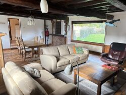 La salle de bains moderne et les 2 WC indépendants assurent un confort quotidien. La toiture en chaume, typique et élégante, ajoute une touche d'authenticité à cette demeure.