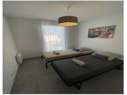D'une superficie de 55m2, elle est composée d'une pièce à vivre avec cuisine ouverte donnant sur une terrasse de 16 m2 prolongée d'un espace vert, de 2 chambres, d'une salle de bain et wc séparé.