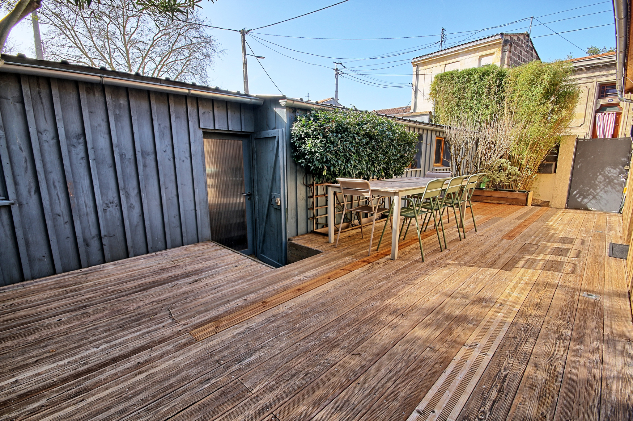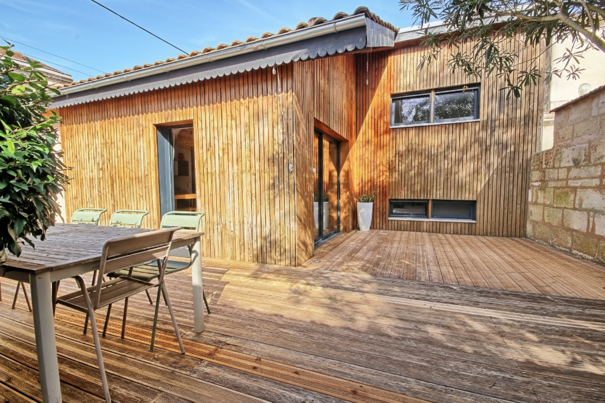Caudéran primerose , dans une petite rue calme , adorable maison en pierre offrant bel espace jour cheminée traversant avec une cuisine aménagée et équipée donnant sur une confortable terrasse en bois . En souplex , grand dégagement dressing , 2 chambres dont 1 donnant sur une terrasse et une salle de bain . Charme et caractère !
