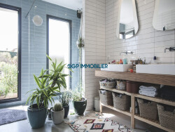 Dès l'entrée, vous serez séduits par les volumes généreux et la luminosité de la pièce de vie, véritable coeur de la maison. La cuisine ouverte, aménagée et équipée, invite naturellement au partage et aux instants en famille ou entre amis.