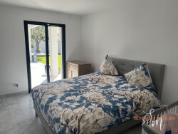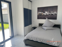 Pièce de vie lumineuse d'environ 70 m² avec cuisine Schmidt équipée 3 chambres avec accès jardin Buanderie (possibilité chambre ou bureau) Salle de bain complète (balnéo, douche, double vasque)