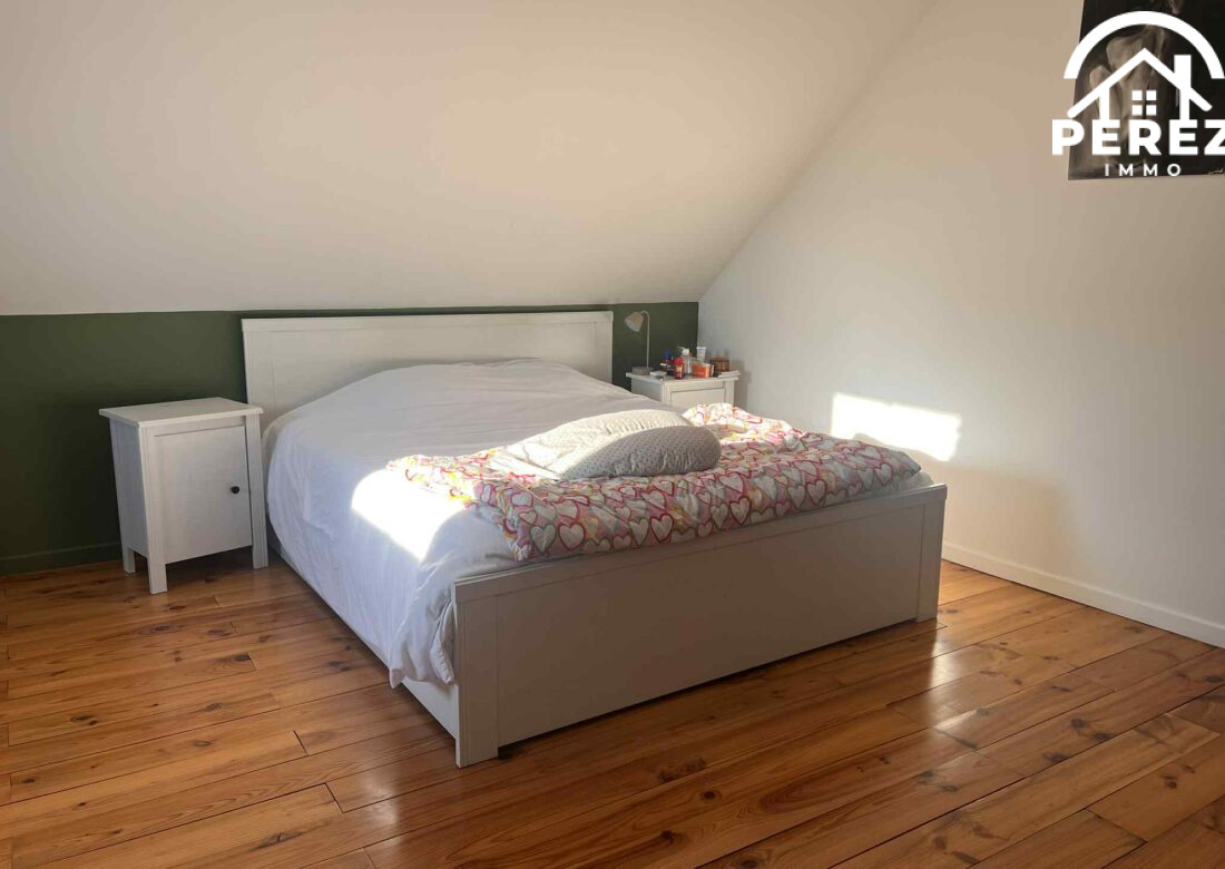 Au dernier étage, un palier dessert une grande chambre de 27m² ainsi que deux espaces bruts à aménager.