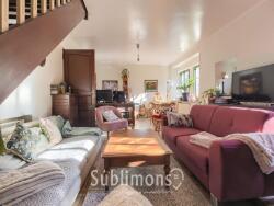 Au rez-de-chaussée, vous profitez d'une belle pièce de vie avec poêle à bois, d'une grande cuisine indépendante, d'une salle d'eau et de WC séparés. À l'étage, deux chambres lumineuses offrent des volumes agréables