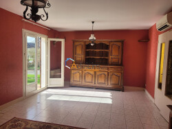 Jolie maison individuelle avec son jardin fleuri, un ancien potager, et une grande annexe, situés à l'arrière de la maison. A l'avant de ce bien, situé près d'une route peu passagère, une terrasse carrelée offre une vue unique sur un beau paysage de campagne. L'entrée s'ouvre sur un couloir traversant, qui dessert toutes les pièces du rez-de-chaussée, et un escalier menant au sous-sol, qui est vaste. Une cuisine partiellement aménagée d'un peu moins de 10 m2, et un spacieux salon salle-à-manger de 25 m2 environ qui donne sur la terrasse, sont les premières pièces desservies. Côté est (à gauche du couloir), deux jolies chambres donnent sur la bordure du jardin et son voisinage tranquille, et côté ouest, une troisième chambre lumineuse, jouxte le salon. WC et salle d'eau avec douche, sont indépendants. Au sous-sol, une pièce chauffée avec fenêtre, donne sur le jardin, et fait office de quatrième chambre (hauteur sous-plafond de plus de 2m). Ce sous-sol compte également un grand garage avec fenêtre, de 26 m2 environ, où l'on appréciera le point d'eau et l'évier. Il est ouvert sur un atelier à fort potentiel de fonctionnalité d'environ 28 m2, et une cave spacieuse avec beaucoup de rangements. L'annexe située dans le jardin, face au garage, dispose également d'un grand espace de plain-pied pouvant servir de second garage avec sa fosse à vidange. Et à l'étage, le grenier est vaste. les 'Plus' : grand potentiel d'aménagement. Bien en bon état avec chauffe-eau thermodynamique, permettant des économies d'électricité, avec une assez bonne isolation. Points d'attention : à rafraîchir, avec quelques travaux de réaménagement possible.